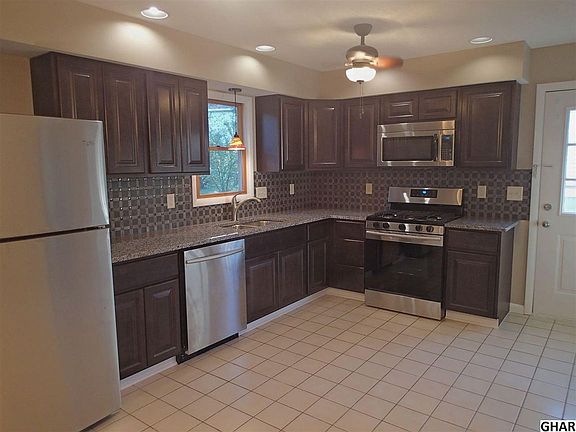 Renovated & Move-In Ready! Located close to Airport, PA Turnpike with easy access to Harrisburg or Lancaster. Updated eat in kitchen with granite counters, beautiful tile back splash, stainless appliances. Formal dining, first floor living room and a spacious 13 x 24 lower level family room that is plumbed for wet bar. Gas heat, central air, central vacuum, off street parking and large rear deck that runs full width of home and is a great place to decompress. New floorings and fresh paint throughout! Clean.