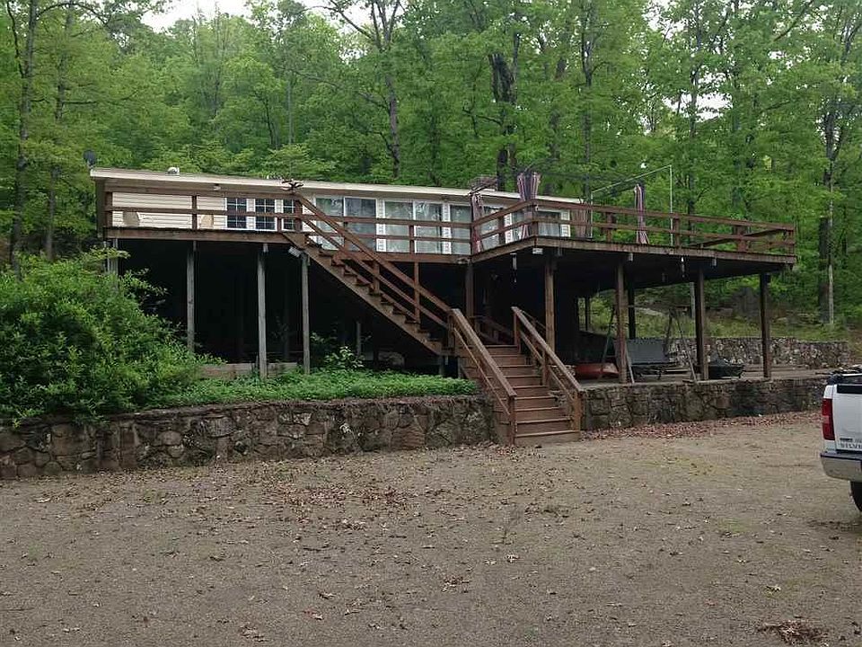 7.00 acres,SECLUDED&PRIVATE w/832 ft of Lake Frontage! One of a kind. Not another one on the Lake like it! Open floor plan with Corean counter tops, Stainless appliances & vaulted ceiling (tong-n-grove)in living room & sun room can be used as 3rd bedroom.Large parking area plus a parking pad above home for an RV (electric hook up)Lighted path(stone steps)to Private 2 Stall Dock w/2 boat lifts. Huge deck facing the Lake for lots of entertaining.Must call for app.Seller has large German Sheppard must B put up