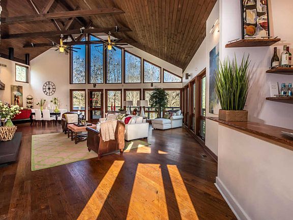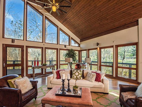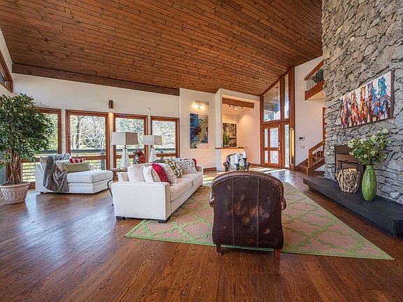Built to entertain comfortably, this spectacular modern home is tucked away on a wooded lot of just under an acre in highly desirable Mockingbird Valley. Upon entry, you are welcomed into the massive great room wrapped in glass, with angled peg hardwood floors and a two-story stone fireplace. Bring the beauty of the outdoors in as the great room opens out on to the expansive deck, completely rebuilt in 2018 with steel frame. The open floor plan creates fantastic flow as hardwood floors continue into the open the chef's kitchen, featuring high-end European appliances and quartz counters. The first floor also includes the master suite with private deck access, 'his and her' closets, and a gorgeous spa bath designed by local architecture firm Rock, Paper, Hammer. A second bedroom and full bath complete the main level. The mezzanine loft is a great space for a library or homework nook! Kids and guests will love the two bedroom suite on the second floor where a central area for entertainment opens into two separate bedrooms and a full bath. Kids and pets will love the secret sunny spot at the very top of the house! The lower level walk-out includes a large family room with a third fireplace, an office, a huge laundry/mud room with tons of storage, and a fourth full bath with jetted hot tub. Living in this home is like being on a permanent vacation. Enjoy the beauty of nature and experience all four seasons in this gorgeous home, all while remaining just minutes from downtown Louisville. Ask for the extensive list of updates and schedule your tour of this home right away!