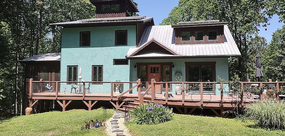 Private retreat on 10 acres feels like a mountain get away yet minutes to all the conveniences. Features - main floor master and lower level bedroom w/en suite bath, 4 bedrooms, 3.5 baths, screen porch, huge deck, wood stove to warm the winter days, passive and active solar, low power bills (average $85/mo)!... a real gem! Pets negotiable, space for livestock, organic garden, pole barn.Convenient to Chapel Hill, Apex, etc.