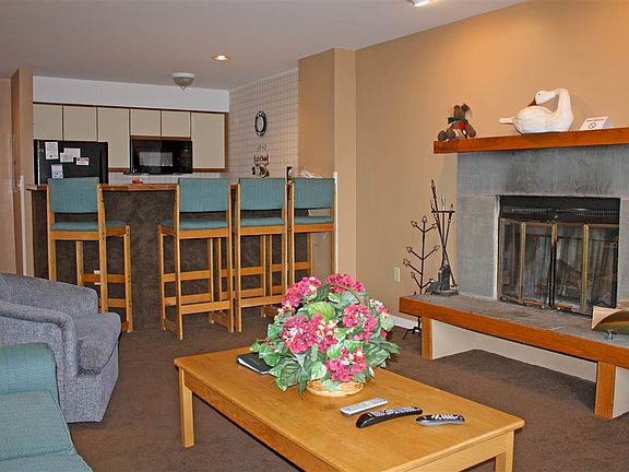 Okemo Mountain Lodge Unit A-205 You'll appreciate this updated, bright and clean, one-bedroom slopeside condo with deck overlooking Okemo's base lodge and lifts. The new paint, carpeting, living room furniture, master bed, window treatments and appliances make this furnished unit a top pick for your ski home. Flat screen TV is mounted in the bedroom for late night and early morning ski reports. End your day of skiing circled around the wood-burning fireplace. This second-floor unit keeps you above the hustle and bustle yet it's conveniently located close to the arches for easy access to all the base amenities including ski school, day care, shops and restaurants. Okemo Mountain Lodge offers 78 units surrounding Okemo's base lodge facility. Each furnished unit consists of 500+ square feet of living space and gas hot-air heat. Quarterly fees include gas heat, gas hot water, water/sewer, cable, WIFI, Capital Reserve.