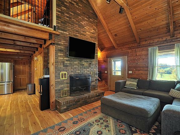 Idyllic country retreat W/NEW FEATURES! This charming 2-bedroom (but easily made 3 bdrms) log home exudes rustic charm, featuring a vaulted ceiling in the great room. The living room boasts a beautiful WD fireplace for chilly evenings. There is a main level full bath w/dual access to the primary bedroom & living area..a partial bath started upstairs. NEW updates!!!Metal roof, kitchen cabinets, appliances & quartz countertops, flooring, driveway, Radon remediation system, new AC unit, water softener, light fixtures and much MORE!!! This home is nestled on 1.8 acres of grassy and wooded grounds, & offers space for outdoor activities, gardening, or simply enjoying the beautiful surroundings. The home’s natural wood finishes, lg windows provide abundant natural light.The loft is a great location for an office or add'l living space. The basement is lg, open & has a high ceiling.. ready for your finishing touches & provides a walk-out to the front yard.Don't miss your slice of paradise.