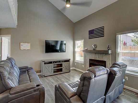 TERRIFIC 2-story, single-family home in established Castle Rock neighborhood! Main level has updated durable vinyl wood flooring throughout, Family Room with rare wood-burning fireplace and vaulted ceiling, Dining Room, and Kitchen. Updated Kitchen features granite-slab countertops with decorative subway tile backsplash, stainless-steel appliances, and bright white cabinetry. Main-floor Master features big walk-in closet, and private bathroom. Upstairs offers 2 bedrooms and full bathroom. Great back yard with lots of room for kids and furry family members to run and play! Main floor master and laundry make this the perfect forever home! Walk to Mitchell Creek Trail!