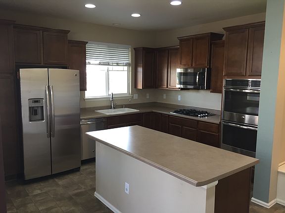 Welcome to this beautiful 3 bedroom, 3 bath home in Traditions. From the moment you step onto the large covered front porch and then into the fantastic natural light, the 9' ceilings and open floor plan will delight you. The open-concept living room provides a ceiling fan and a wrap around fireplace with custom mantle flowing into a phenomenal kitchen. The gourmet kitchen with 42" cabinets features a gas cooktop, double ovens, oversized island and a large pantry. The dining nook provides a sliding door overlooking your private back yard oasis. The expanded rear concrete patio features a gas line for your grill and offers both covered and uncovered entertaining spaces that overlook the low-maintenance landscaping. Enjoy outdoor living year-round with NO back yard neighbors! The main floor is completed with a powder room and a "drop zone" off of the kitchen with storage hooks and a built-in shoe bench which leads into the 3-care tandem garage. on the 2nd floor, escape to the owner's suite including a bonus room with a 2nd fireplace and ceiling fan, large vaulted bedroom and a luxurious 5-piece master bath, separate vanities, and jetted oval soaking tub. Amazing 9' X 9' walk-in closet. The upper floor also has 2 additional large bedrooms, a full bath, and a convenient laundry room with folding table. The washer and dryer stay. There is also flexible additional space in the unfinished full basement which has rough-ins for plumbing. Located near a park/green belt and short walk to the clubhouse and pool. This community is near the Aurora Reservoir, playgrounds, parks and trails, just minutes from Buckley Air Force Base, convenient to 470 and I-70 and a quick drive to Denver or anywhere you want to be! An RTD park and ride is even close by. Welcome Home!