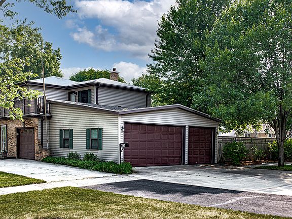 Great home in Roselle on a nice size lot across from beautiful Turner Park. Features 4 Large bedrooms, 2 full baths and a 1st floor half bath. Upstairs recently remodeled and expanded to create a large primary bedroom with walk-in closet and a beautiful, full bathroom with large walk-in shower. Awesome 4 plus car garage with front and side access doors and room for a workshop. Hardwood floors throughout most of the house. Family Room is a wonderful space to entertain in or retreat to, has lots of natural light and is enhanced with a Mini-split a/c and heater. Kitchen features newer stainless steel appliances (fridge '22) and has ample maple cabinets, counter space and pantry. Living room with beamed ceiling and beautiful, new gas fireplace. Separate dining area, updated mud room, and partial basement with two workstations. Big, fully fenced yard with concrete patio, garage access, and outdoor storage shed. Leaf filter gutter guards installed in '22. Main roof of house in '16. Picture window and basement windows in '18. New furnace w/humidifier. Driveway and patio expanded. Rooftop deck with nice view of Turner park. Close to downtown, train, expressways and near to all the great shopping, restaurants and parks that the surrounding area has to offer. Excellent public and private schools including Lake Park High School. Come and take a look!