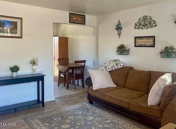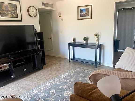 Sunset Foothills condo community offers beautiful grounds that include pool, spa, basketball courts, covered Ramada with grills. Come and see this nicely appointed home that features living room with adjacent kitchen and dining area with vinyl plank flooring throughout with exception to ceramic flooring in kitchen and bath. Generous size bedroom with walk-in-closet. This unit has interior access to laundry room unique for this community. Come see this ease of ownership condo that's convenient to shopping, restaurants, walking trail (Tumamoc Hill) and I-10.