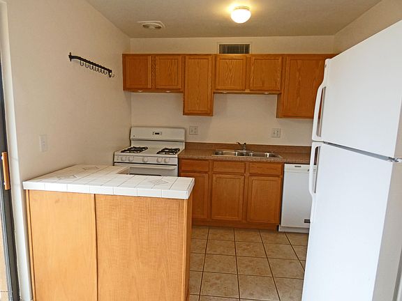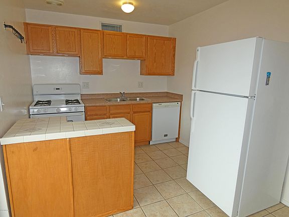 Well-maintained, gated, & quiet condo complex! This charming, sparkling clean unit has new carpet in the bedroom, ceramic tile in the kitchen and bathroom, and laminate in the living room. The kitchen has a gas range, dishwasher, & refrigerator. Nice breakfast area in the kitchen with a view out the patio door. Generous sized bedroom with large walk-in closet. Closet has a built-in shelving unit. Full tub/shower in bathroom with tile surround. Dual pane windows. Small fenced patio with a tree for shade & room for small/medium size pet. Move-in ready. This unit is close to pool area, but not too close! The complex presents a park-like setting with pool, spa, rec center, and playground. Located close to shopping, easy access to I-10, U of A, and downtown. Come take a look at your new home!