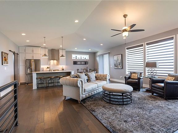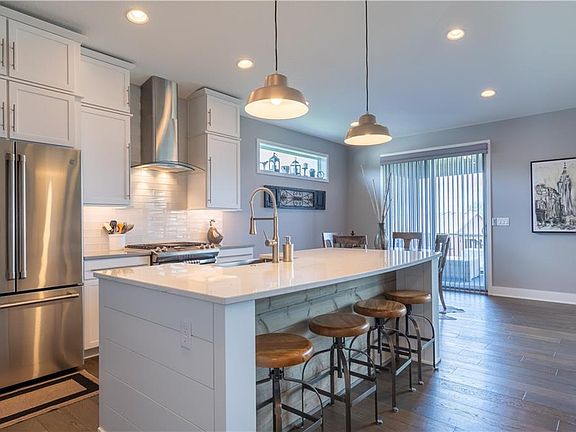 Stunning Walkout Ranch On Cul-De-Sac 15 Minutes from Downtown! Save money with the TAX ABATEMENT! This gem features a stylish kitchen w/ quartz tops, white shaker cabinets, a stainless farmhouse sink, shiplapped island, under cabinet lighting, and a HUGE walk-in pantry with coffee bar and sliding barn door! Glass tile backsplash, hood vent, and stainless appliances--including a slide in GAS range--complete the space. TONS OF LIGHT! Rich hardwood floors, a shiplapped and tiled gas fireplace, and high ceilings make the living room pop! Large master suite features a top-to-bottom tiled shower with rain head, double vanity, and walk-in closet. Walk right through your closet to access the 1st floor laundry and through again to the drop zone. FINISHED WALKOUT BASEMENT features a large living room and WET BAR-- perfect for entertaining. Step out and enjoy the summer nights on your covered deck or on the patio beneath. Stylish features and upgrades throughout the home make it a MUST SEE!