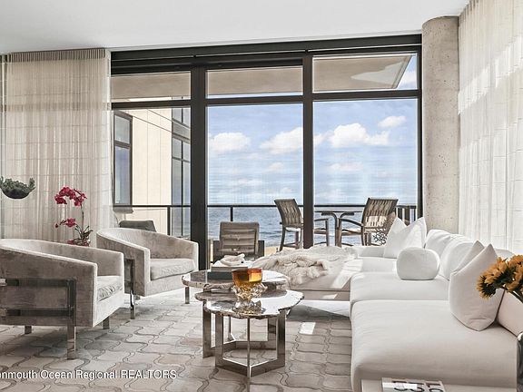South Beach at Long Branch is renowned for it's distinctive architecture and beyond ordinary amenities which include semi-private bio-metric elevators opening directly into your unit, high-tech 24/7 gym, business center, virtual concierge, saltwater infinity edge pool, grand great room, private dining area, guest suites, underground parking for 2 cars, and TAX ABATEMENT. This 1704 sq ft 2 bed 2.5 bath unit is positioned with desired South/East exposure and direct OCEANVIEWS. The exquisite details include open floor plan with floor to ceiling hurricane resistant glass, state of the art fixtures, Italian kitchen cabinetry, Wolf & Sub Zero appliances, Upgraded bathrooms include Toto toilets, Custom cabinetry, shower, door, enclosures, new flooring, custom lit vanity mirror, Custom leather built-in wall, new flat screen TVs, and a sound system in the TV room. Custom built-ins in the pantry, bedroom closets, and coat closet. All custom window treatments with electric shades. European wallpaper. Oceanfront terrace with gas fireplace provides an additional 144 sq ft.