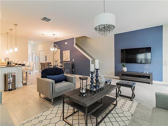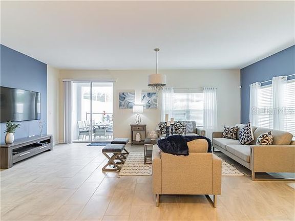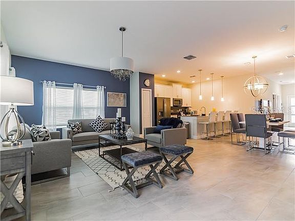 This beautiful and professional decorated vacation home includes five bedrooms, four bathrooms, and a kitchen that overlooks both the dining and living room. You and your guests can enjoy out to the covered patio with a private pool. Highly energy efficient home feature 42" kitchen cabinetry, quartz counter-tops in both kitchen and bathrooms, SS appliances, security system, faux-wood blinds. CHAMPIONS GATE RESORT OASIS CLUB CLUBHOUSE AND WATER-PARK include: Lazy River, Water-slides, Swim-Up Bar, Water Falls, Beach Entry, Spa, Splash Pad, Grill, Bar, Fitness Area, Theater, Games Room, Tiki Bar and Cabanas. Simply relax by the pool, watch your family have the time of their life. All of these amenities plus use of seven tennis courts are INCLUDED in HOA. Cable and Internet are included with the HOA.