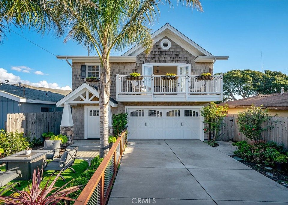 Beautiful custom-built Cape Cod home in the heart of Morro Bay! This stunning home is one-of-a-kind and offers show stopping curb appeal. Head inside to find a light filled foyer, a full bathroom, hall storage, and 2 good-sized bedrooms, one with a murphy bed and the other with private access to the back patio. Cherry wood floors cover the entire downstairs and lead you upstairs to the gorgeous kitchen, dining and living rooms. The cathedral ceilings and the cobblestone rock gas fireplace really make the space! The attached balcony gives you pee-a-boo views of the ocean and is the perfect spot for enjoying the coastal weather. The open layout kitchen with granite countertops and Whirlpool stainless-steel appliances, is lovely for everyday use and entertaining. The master suite is conveniently located off the living room and has its own private balcony with ocean views, tray ceilings, and a large bathroom. There's an outdoor shower that's perfect for those who enjoy water sports, plus, an a/c unit which is rare for this area. Meticulous detail throughout the entire home makes it a true turn-key property. Located near the beach, restaurants, parks and more!