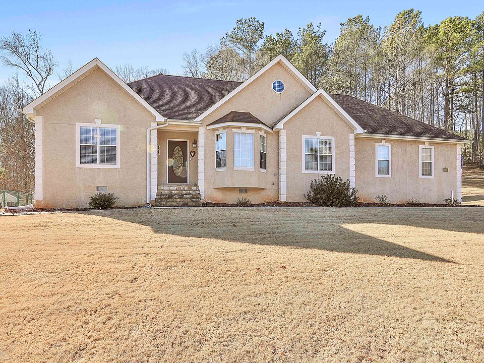 Welcome home to this beautifully landscaped, well maintained 3 bedroom and 2 bathroom ranch with bonus room. Upon entering the home you are welcomed by the open floor plan with a large formal dining room open to the living room, featuring beautiful vinyl flooring throughout the main level. Walk into the kitchen featuring a bar, stainless steel appliances and plenty of storage space! The kitchen opens up to the large family room with built-in speakers and eating nook. The laundry room, adjacent to the kitchen, has a large pantry and extra storage above the washer and dryer. The primary suite features tray ceilings, double vanities, separate shower and soaking tub. The two secondary bedrooms are on the opposite side of the house and share a full bathroom. Upstairs, there is a finished bonus room with a hidden wall safe. Owners have recently created a second living area, boosted Wi-Fi service, added wall heater in primary suite, upgraded the air conditioner and water heater. The backyard features a wooden platform perfect for grilling and entertaining with a small pond. A shop with plenty of overhead storage and a utility shed finish off this well landscaped lot. Make this home today!