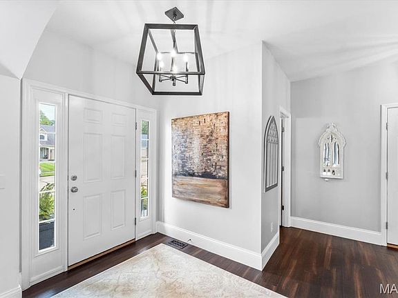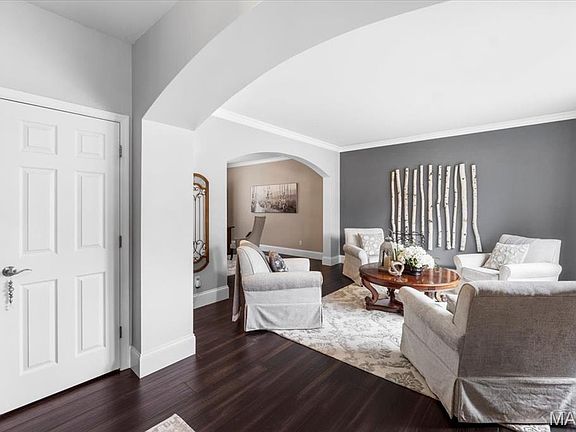 Welcome to this beautifully appointed home, nestled at the end of a quiet cul-de-sac in The Legends. From the moment you enter, you'll experience a sense of pride and sophistication. Elegant custom arches define the living room and office, enhanced by built-in speakers that create a warm, inviting atmosphere. The gourmet kitchen is a chef’s dream, featuring granite countertops, 42" custom cabinetry w/ crown molding, a tile backsplash, under-cabinet lighting, walk-in pantry, center island, stainless steel appliances, and a gas range. Just off the kitchen, a spacious deck offers the perfect space for outdoor entertaining, overlooking a private, tree-lined backyard. Plantation shutters on the main level, stone flanked gas fireplace and rich engineered hardwood flooring throughout the main/upper levels bring style/continuity. A vaulted bonus room w/custom built-ins adds flexible living space. The serene primary suite boasts a vaulted ceiling, walk-in closet, and spa-like bath with dual vanities, a jetted tub, and separate shower. 3 add. spacious beds share 2 updated baths. The finished walk-out LL includes a large FR, full bath, and 5th bedroom w/generous closet space. Add. features include second-floor laundry, a 3-car insulated garage with hot/cold water and 220V, low-maintenance exterior, and a NEW ROOF 2023 w/"shatter resistant" shingles ($1000 discount on insurance rates) Community amenities include a pool, tennis courts, and park—award-winning Rockwood School District.