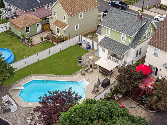 Are you tired of the traffic going to the Jersey shore just to take a dip? Stop the madness! Your backyard oasis awaits you. In ground heated pool,(new mesh safety cover) patio,picnic & BBQ area is all right here. Colonial home with a Formal Dining room, large EIK w/ Separate Breakfast area w/sliders to your open porch, 1/2 bath and Living room on the fist floor, Full basement has inside and outside entrance,w/toilet closet, laundry area and plenty of storage. Upstairs boasts 2 appointed bedrooms with plenty of closet space & a Remodeled full bath. You will not be disappointment viewing this well maintained home as you sit and relax on your rocking chair front porch. Get out of the hustle and bustle, Blocks to the train. close to all major roadways. 20 minutes to the airport. Downtown offers dining,cafes,library and coffee shops. Recreational paths,Grab a coffee and Stroll to our Bayfront watching the sailboats go by.Call the movers relax and enjoy the comfort of your home