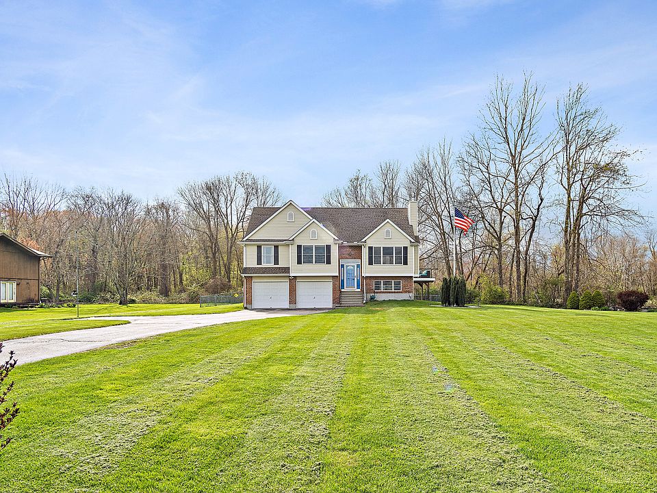 Breathtaking views & modern updates await in this Raised Ranch built in 2002. Live in comfort and style with this stunning raised ranch boasting panoramic views! The updated kitchen features brand new countertops, a breakfast bar, a pantry, and new stainless steel appliances - perfect for the home chef. Recently refinished hardwoods grace the living room and hallway, while plush new carpets provide comfort in the bedrooms. The primary bedroom offers a jetted tub. Fresh paint throughout creates a move-in-ready canvas for your personal touch.This home offers much more than style: vaulted ceilings add an airy feel, while the finished lower level provides additional living space with a family room, a bathroom, washer & dryer - ideal for entertaining or creating a private haven.Enjoy the outdoors: Relax on the carefree deck as you sit relax on the patio set and watch the birds or enjoy smores around the firetable. A fenced yard and shed provide added convienence.This located in a great location with easy access to all you need! Don't miss this opportunity to own a piece of paradise!