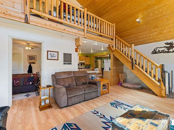 This lovely cabin in the woods is perfect for your family, or to make some extra money with overnight rentals - or both! Three bedrooms plus a loft area provide plenty of room for everyone. One bathroom for the master suite on the main floor, and a Jack-and-Jill bath for the upstairs bedrooms. Easy to care for flooring on the main floor, and tile in the bathrooms. Electric wall heaters take the edge off of chilly fall nights, or use the absolutely gorgeous wood-burning fireplace to warm the whole home. The back deck is the perfect size for summer parties, and the festivities can spill out to roast marshmallows around the approved fire pit in the back yard. A driveway next to the house is all set up for RV parking, with a septic tank port and power hookup. Need space to park your ATVs? No problem! A separate garage fits the bill perfectly. You'll be impressed with the care the owners have taken in this property, and anxious to start making your own memories here!
