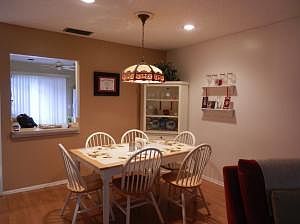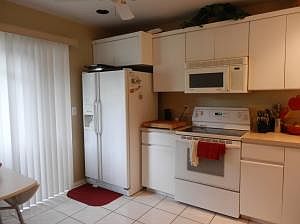 3rd bedroom does not have a closet and please exclude living room fan and dining room light fixture. Some furnishings are available. Rear patio is enclosed with a/c and tiled. Eat-in kitchen with slider to patio. Living room has wood flooring. Community offers clubhouse and 2 pools.Located close to shopping, library and hospitals.