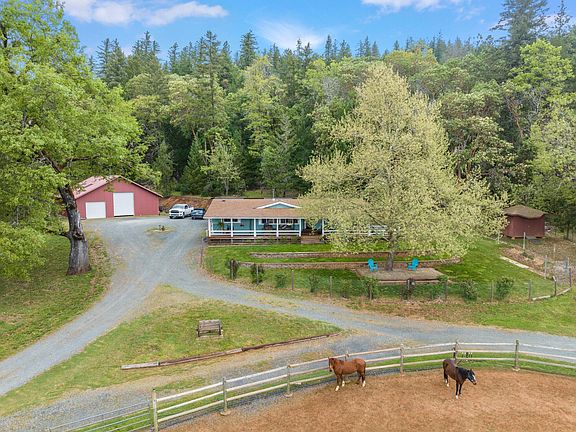 This horse property spans over 7 acres. The well-maintained, park-like grounds are both gated & fenced, offering a secure haven for you and your animals. The carefully maintained home boasts a split floor plan featuring 3 bedrooms, 2 bathrooms, and a cozy wood stove for chilly winter evenings.