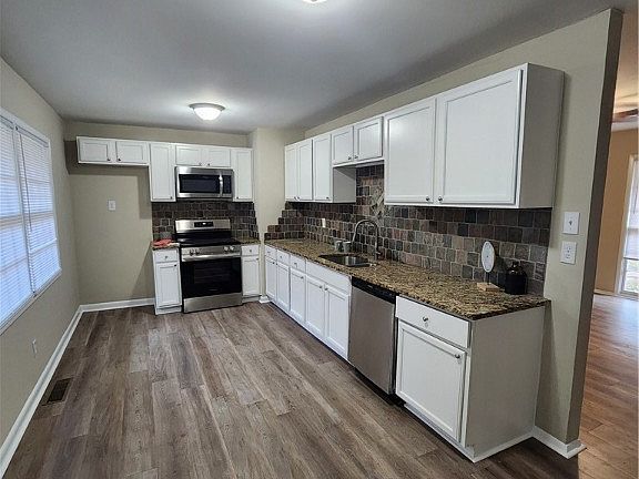 UPDATED!!!! This ranch style home is move in ready featuring 4 bedrooms X 2 bathrooms complete with NEW FLOORING throughout! As soon as you walk in you enter the large open concept Livingroom / dinning room and eat-in kitchen area. The Kitchen its self is also spacious with ample cabinetry and updated with stainless steel appliances (fridge not included), a beautiful backsplash, and so much more potential for you to customize to your needs. Also inside you will find a split bedroom plan as one of the bedrooms is off the extra large mud room/ laundry room with easy access to the side door and able to be shut off from the main area making it perfect for guests/ in-laws or even an office! If that wasn't enough, step outside to find a LARGE FENCED IN back yard with concrete pad great for entertaining, pets, kids or just simply enjoying the day! This home is conveniently located with in walking distance to UGA Veterinary Hospital and just a minutes drive to the heart of Athens and the BEAUTIFUL UGA campus! Don't miss this GEM!