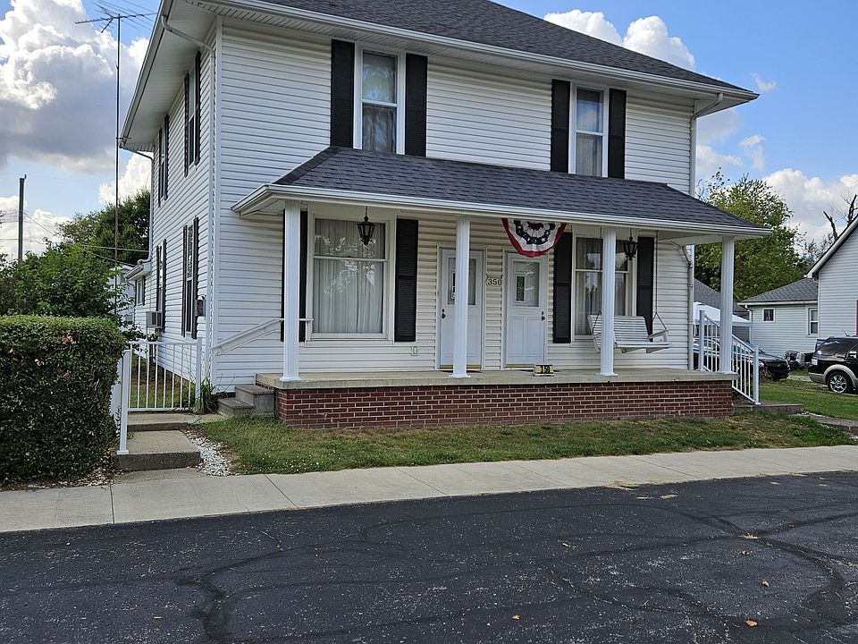 Fixer upper could be single family home or duplex. Two car detached garage. Large covered front porch. Being sold as-is.