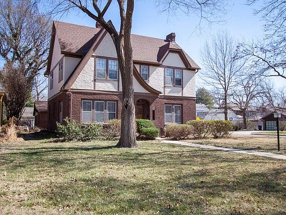 Tudor style home with charm and great floor plan. This home boasts a main floor laundry/mud room and a "man cave" addition attached to the garage. Updated electrical and plumbing, along with insulation blown in on all walls and attic. Each room has crown molding, original doorknobs and hardwood floors throughout most of home. Bonus room off living room currently used for a music room but could be a den, office or small family room. Several of the light fixtures are original to the home as well. Kitchen has good space and the breakfast room continues the cabinets for storage and a pantry area too. Sellers converted a back porch to a laundry area/mud room. Upstairs are three bedrooms and a full bath. Each room has a walk in closet, crown molding, ceiling fan and hardwood flooring. Off the detached 2 car garage is the seller's "man cave" room. It is 10X17 with insulated walls, concrete floor and possibilities galore. Home sits on a large corner lot, is close to the College Hill Park, schools, shops and restaurants and highway 54 for easy commute. Come see this one soon!