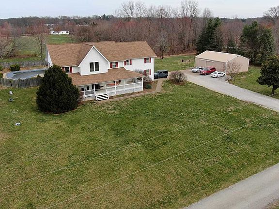 WESTSIDE COUNTRY LIVING! close to west side shopping! Sitting on almost 3 acres, this home features four bedrooms and two and a half bathrooms. The main level has a large open floor plan with cathedral ceilings and an abundance of natural light. The kitchen has a large walk in pantry with an island, dining room, and living room with a catwalk that overlooks the area. The office is tucked away off the foyer. The main level owners suite has a walk-in closet, tub with separate shower, and additional closets. Upstairs has 3 large bedrooms, and a huge additional bonus room that overlooks the beautiful grounds and inground pool. The home also comes with a two car attached garage, inground pool that is surrounded by a privacy fence, and a large pole barn.