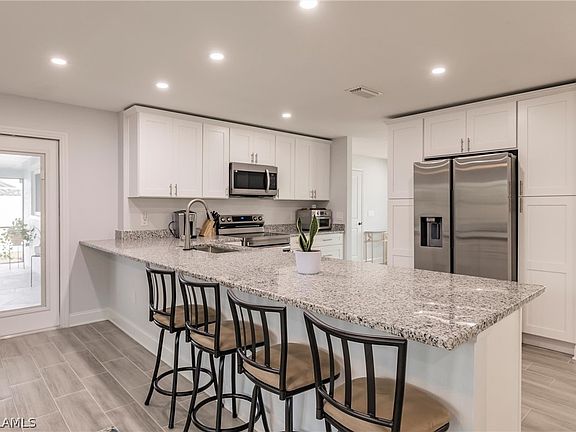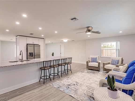 You have to see this newly remodeled pool home in the heart of SE Cape Coral. The complete remodel of this home cost over 200k. This 3 bedroom, 2 bathroom has virtually every upgrade imaginable. Let's start off with the kitchen, you will find new wood cabinetry with soft close doors, plus granite countertops, and upgraded stainless steel appliances. The kitchen also offers a huge island that overlooks the living room which makes this home perfect for entertaining. The home has elegant tile flooring throughout the entire home with upgraded 5 1/4 baseboards as well as new paint throughout. The main suite offers a large bedroom with a walk-in closet and a completely remodeled bathroom that is to die for. It offers new wood cabinets, granite countertops, and a stunning tile shower with glass doors. Additional interior upgrades include new hurricane-impact windows and doors, new ceiling fans, and canned lighting throughout. The a/c is less than 2 years old, plus the home has all new updated electrical, plumbing, and a new tankless hot water heater. The home has also had blown-in insulation making your electricity lower than average, new vertical blinds, and a completely remodeled guest bathroom with new cabinets, and a tile tub/shower. The laundry room offers a large closet and laundry sink. All I can say, is you have to see it believe it. The home is stunning. But wait, we are not done yet. The exterior of the home has a new roof, fascia, and gutters plus it was recently painted as well. Your new private pool area is perfect for catching up on some rest and relaxation, offering a completely renovated pool with a newly resurfaced pool, and deck, with new coping making a complete outdoor transformation plus a new privacy fence. The screen enclosure was completely rescreened and also included new fans and lighting with fresh landscaping.. The owners spared no expense on the remodel of this home. This home is insane and a must-see. Bring your pickiest buyers, they won't be disappointed. The owners have a current flood insurance policy that is transferrable. Call for your private showing today.
