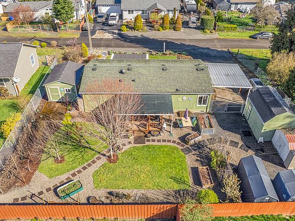 Spacious floorplan with vaulted ceiling throughout, large primary suite with spacious closet. This home sits on a quarter acre and is a gardeners delight. Fruit and berry bearing trees and bushes and raised garden beds ready for you to add to them. 2 sheds, great for storage or as a small shop. 2 Large covered patios front and back to enjoy year round. Fully fenced yard. Newer heat pump, roof and flooring. New septic line from house in 2018. 1998 Golden West MF home with a continuous foundation. Carport provides ample covered parking along with a flat area for boat/RV parking. Come check this gem out, it won't last long.