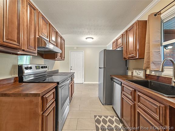 Multiple offers - deadline May 7th at 11:00 am. A place to call home! Minutes away from Fort Liberty, 350 Sandclay is located in Harnett County and sits on almost half an acre at (0.47). You will find 2 living room areas with one that has an electric fireplace cabinet, 3 bedrooms, 2 full bathrooms, and a large backyard covered porch and single carport. Inside you will find original hardwood floors, new windows, butcher block countertops in kitchen along with stainless steel appliances. Outside you will enjoy the large fully fenced-in yard that offers mature trees: one Chestnut, two Pecan trees, and one Peach tree. Plus, a nice detached workshop that has electric. New Gutters. Don't delay, start enjoying this home and the great outdoors.