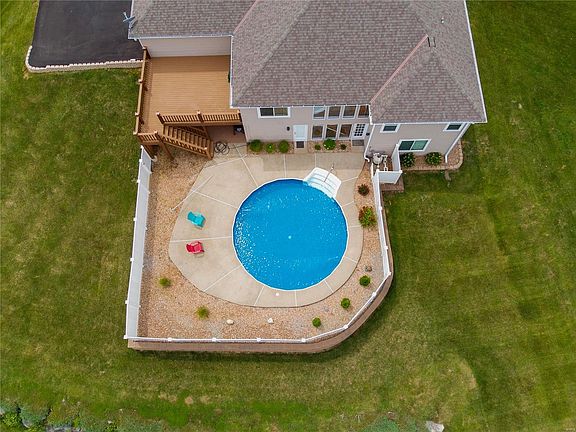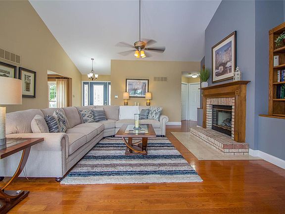 Fantastic Atrium Ranch with Inground Pool! Walk into beautiful view of Atrium Wall of Windows with view of your pool. Hardwood Floors on most of the main level with 5 1/2 in. baseboards. Great Room w/gas fireplace, built in book shelves and open staircase to lower level. Formal Dining Room, Kitchen w/double oven, gas cooktop and breakfast room open to great room. Large master with hardwood floors, spacious full bath, custom closet built-in. 2 addtl. bedrooms and full bath. Walk down to Walk Out lower level w/professional finished family room, 4th bedroom and full bath. 2nd walkout can easily be finished to provide a 5th bedroom. Plus plenty of storage. Luscious relaxing pool w/vinyl fence, covered patio area, deck w/retractable awning. Located on quiet cut-de-sac w/oversized drywalled insulated side entry garage w/bonus storage area. Newer sealed driveway, HVAC, Gutters, Soffits/Fascia & more. Main floor Laundry.