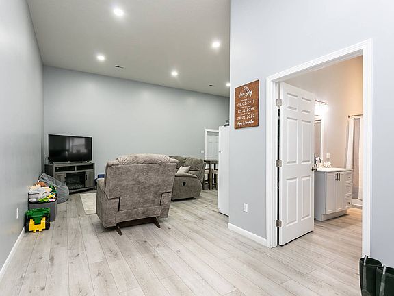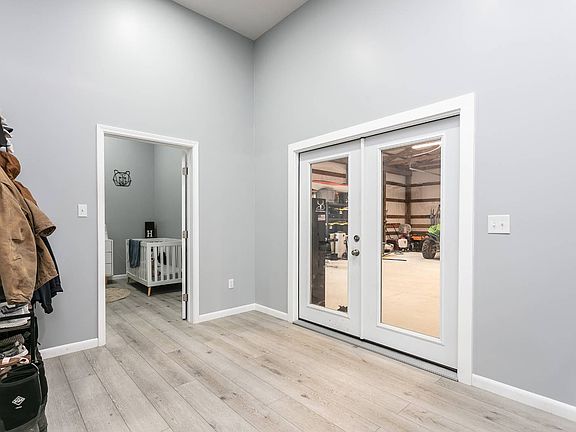 Here is a first-class and ever-so-popular barndominium that sits on a stunning 3.52-acre spread of land and is just waiting to be enjoyed by its new owner. The home was completed in May of 2022 and offers a wonderful floor plan that includes an open living room/kitchen concept, 2 bedrooms, and a generously sized bathroom. The living room (and the rest of the home) is laid with a soothing luxury vinyl plank floor and has 12' ceilings for that extra roomy feel. The kitchen is equipped with an assortment of classy white cabinets that pair beautifully with the stylish laminate countertops with room left over for an island and/or dining area. The bathroom connects to the primary bedroom and has an elegant sliding door, a sleek vanity, and a sizable storage closet. No detail was overlooked which is why the home has extras that include outlets in the corners of the ceiling (to make the installation of cameras and other electronics a breeze), an electrical box on the outside of the home so you can run electric to outbuildings in the future, and if you want to add on... not a problem as the septic system is designed to handle a 4-bedroom house! The garage area is the star of the show and has everything you need to set up shop from the 10' X 10' automatic overhead doors to the deeper poured concrete that would allow for a car lift to be installed. This is simply an awesome area that offers lots of possibilities. Outside you will love watching the world go by from the concrete patio as you look out into the scenic knobs that provide amazing views all year round! Then running through the property is a natural spring that feeds into a creek and to put your mind at ease... drainage tile has been installed all around to divert water away from the home... and as an added bonus... the property comes with a 32' X 48' hoop barn too! Call MIKE SPALDING for the grand tour today!