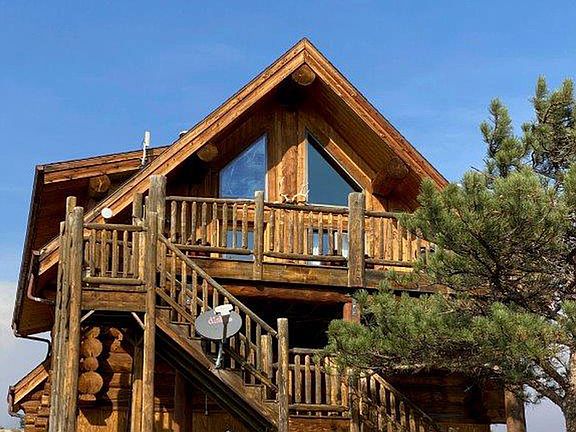 Beautiful 360-degree views w/ peace & tranquility on 48.19 acres in Larimer County just outside of Lyons. A log cabin / two car garage building has 2 residences & land may be subdividable, buyer to verify for their needs. Main living area is above the garage w/ a bedroom & non-conforming bedroom loft. The great room with tall, vaulted ceilings and exposed logs is rustically charming! The spacious bathroom w/ separate tub & shower is delightful! Plenty of windows & skylights brings the sunshine in. The lower-level efficiency apartment is newer and has a large 3/4 bathroom. The garage is drywalled & painted w/ a heater. Metal storage building around the hill and 1 sea container & shed included. "Rural Open" zoning has many possibilities, see Land Use Code in documents tab. Sold in "as is" condition.