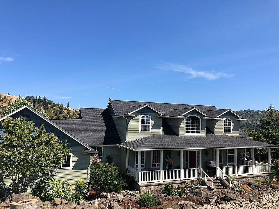 Unbeatable 360° views of the surrounding hills from nearly every room in this gorgeous four-bedroom Plus family room/office/5th bedroom home. Madrone hardwood floors fill the living spaces and extend to the breakfast nook and kitchen with custom maple cabinetry and tile and granite countertops. generous main floor master suite has exterior door to hot tub and sunrise views. The grand living room has 19 foot ceilings and a woodstove with stone surround. Stick built 62 x 48’ barn with concrete floor, power and hot water includes seven stalls with outdoor paddocks, heated tack room and room for a hayloft.