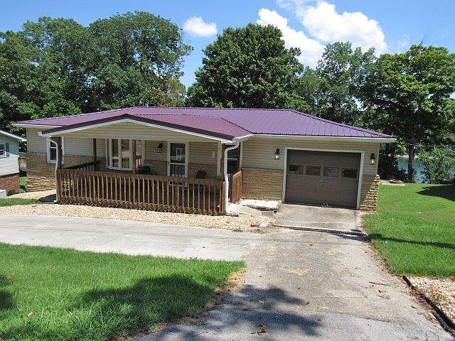 Cute lakefront bedford stone home with 3 possibly 4 bedrooms,1 1/2 baths, eat in kitchen with a lakeview, finished walkout basement, newer metal roof, central heat and air, and a one car garage. Great location! Just minutes to marina, boat ramps, golf, restaurants, etc.