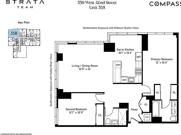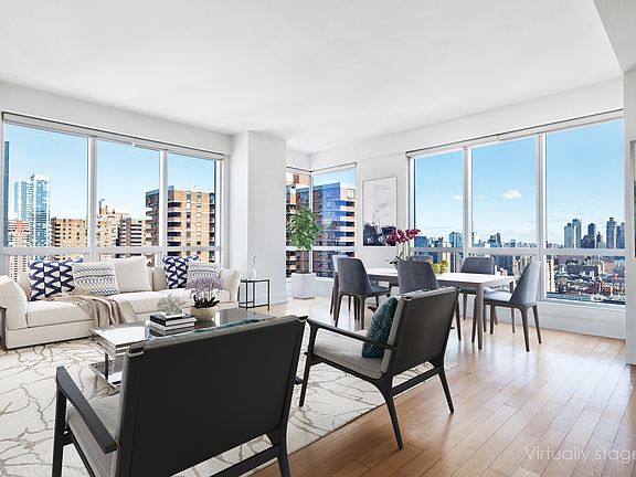 Impressive panoramic views of Downtown Manhattan, Empire State Building, and One World Trade Center from this 2 Bedroom | 2 Bathroom corner unit available in the ORION condo! Floor-to-ceiling oversized windows with southwestern and northwestern exposures enhance the expansiveness of the combined living/dining open-concept layout. The windowed kitchen with granite countertops, premium stainless steel appliances are desired by any serious chef. The generously proportioned primary bedroom has a walk-in closet and an en-suite bathroom with a marble vanity and soaking tub. The second bedroom can also easily fit queen-size bed. The home is outfitted with rich hardwood oak flooring. In-unit washer/dryer for added convenience. Hotel-Inspired Building Amenities: -Full-time Doorperson & Concierge -60' Indoor Lap Pool & Jacuzzi -La Palestra-branded Health Club with Sauna, Steam Room, and Yoga Room -Three Outdoor Furnished Roof Decks with a Sun Tanning Deck -Media Room, Business Conference Room, and Children's Playroom -Laundry Room -Cold Storage -Connected Parking Garage (managed by a 3rd party company) Midtown West offers some of the finest lifestyle and cultural highlights in the city, such as the Hudson River Park and the Theatre District. The weekly Farmer's Market on Saturdays, Target, Big Apple Meat Market, and a multitude of fine dining establishments are all within close proximity. One can easily access the West Side Highway; train lines A, B, C, D, E, N, Q, R, 1, 2, 3, & S; Port Authority; and NYC or NJ ferries. Application Fees: $20 Credit Check (per person, non-refundable) If a lease is signed, initial Condo Application Fees: $125 (per person) Background and Credit Check Fee (non-refundable) $450 Lease Processing Fee (non-refundable) $1,000 Move-In Deposit (refundable) $500 Move-In Fee (non-refundable) $1,000 Move-Out Deposit (refundable) $500 Move-out Fee (non-refundable) $65 Digital Submission Fee (non-refundable) ~$182.50 or 5% of All Fees/Deposits BoardPackager App Admin Fee (non-refundable)