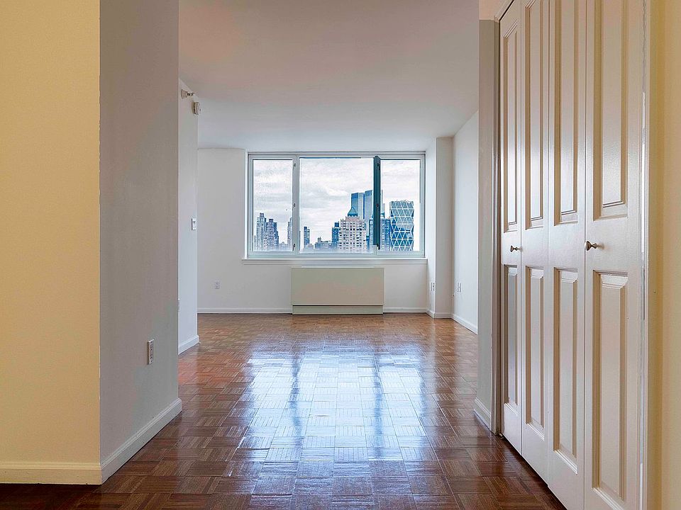 H-LINE: Spacious alcove studio. Three large closets! Faces North with unobstructed views. Good sun and New York energy. Full separate kitchen, regular appliances, and garbage disposal. White tile bath with soaking tub and pedestal sink. Crisp chrome fixtures. Great location close to more than 8 subway lines, Port Authority and the post office. Building: 24 hr concierge/ doorman property.