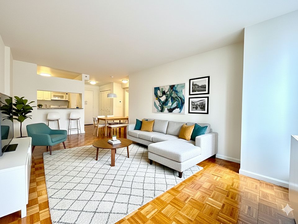 B-Line: Sun-drenched lofty, South facing flex two bed in the heart of Midtown West.