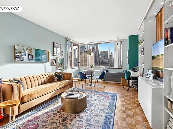 Residence 12C is a one bedroom condominium with sunny Southern and Eastern exposures. Available January 15th, 2026. This bright apartment features open city views, new HVAC unit, marble bathroom and pass through kitchen with new stainless steel appliances. Great closet space throughout. The building has a live in Resident Manager and the amenities include 24 hour Concierge, doorman, eight laundry rooms, four roof decks with beautiful open views and new outdoor furniture, courtyard with tables and new benches. 40,000 sq ft. newest gym TMPL with the latest technology, saltwater pool and sauna is connected to the building. Monthly and annual memberships available. The Residences at Worldwide Plaza is a full service condominium ideally located in the heart of the vibrant Manhattan's theater district and the Midtown Financial District, close to Central Park, Lincoln Center, the Hudson River Park, Rockefeller Center, St. Patrick's Cathedral, numerous restaurants, museums and points of interest. The garage on the premises is available to residents for a nominal fee. Minutes to the C, E, 1, W, N, R, B, D, F and M subway lines and cross-town buses.