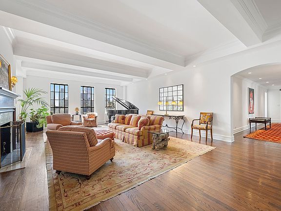 The home also carries a remarkable artistic history. Once the home of legendary Broadway composer Charles Strouse and his family, whose beloved works include Annie and Bye Bye Birdie, this residence holds a special place in New York’s cultural history. The apartment’s sunken living room—sometimes transformed into a theatre space—served as a creative haven where Strouse wrote, composed, and entertained family, fellow artists and friends, infusing the home with a rich artistic spirit that endures to this day.