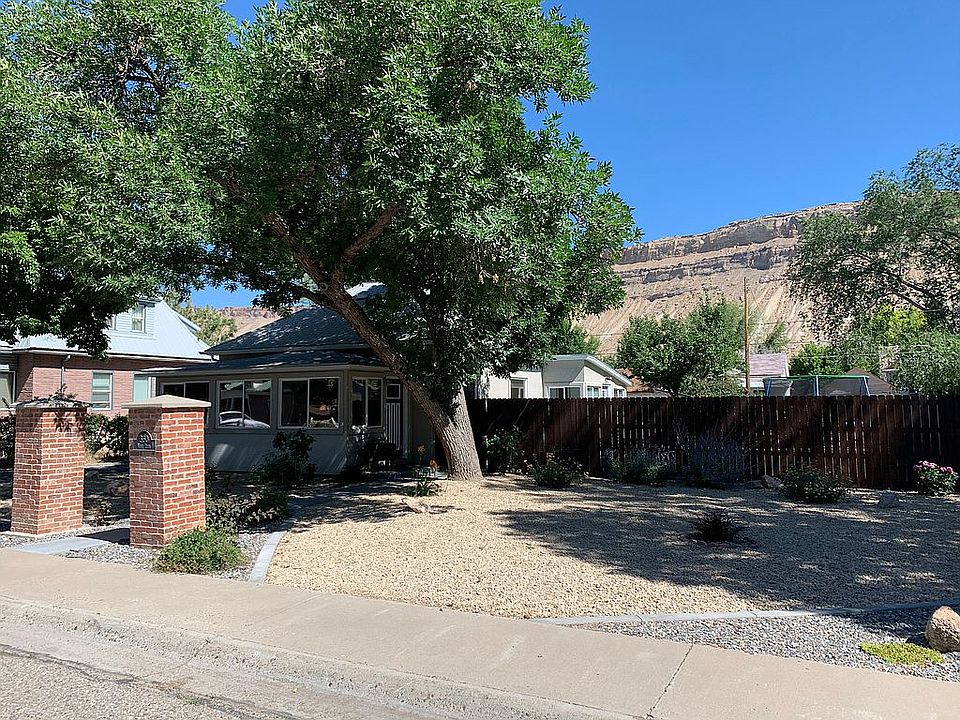 A true Palisade Peach! Historical charm with all the modern amenities! Completely restored in 2010 with an open floor plan that allows natural light from every angle and boasts incredible mountain views. New landscaping and irrigation completed in 2019. Original hard wood flooring in the living room with gray slate tile flooring in the kitchen, bathroom, and foyer/sun room; rough cut granite countertops, and a custom fractured glass shower/bath set up are just a few of the amazing details. Two sheds and a hot tub are included with the sale of the home. Giant fenced-in backyard with mature lilacs and apricot tree plus tons of room to add-on or build a new custom garage. Windows are treated with a reflective tint to help offset a/c costs in the summer and allows you to see out, but you can not see in. Blocks away from schools, Peach bowl park, Pool & Downtown Palisade! Get your own Peach!