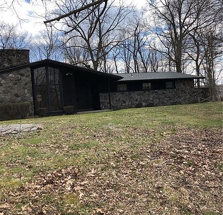 Sprawling ranch home set back from West Leechburg Road is nestled among the trees--31 foot original kitchen suggests future gourmet kitchen and family room with sliders to the back yard and quite a VIEW--Built-in bar and fireplace--Lots of Potential with 2042 square feet of living space--Convenient main floor laundry room--covered front porch--Security System-- all this with over FIVE ACRES of Privacy