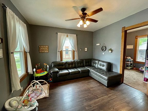 Imagine waking up every morning to the sweet aroma of coffee while you relax on your front porch swing. Then, in the evenings, you can unwind by the fire pit in your own private fenced-in backyard. This lovely country-style farmhouse is perfect for a growing family, with three cozy bedrooms and a full bathroom. You'll fall in love with the great room, which features 9ft ceilings and beautiful natural wood trim that exudes warmth and character. The main level has two nice-sized bedrooms, a large laundry room, and a full bathroom. The updated eat-in kitchen boasts butcher block countertops and newer stainless steel appliances, making meal prep a breeze. Outside, you'll find an oversized two-car detached garage, perfect for cars or a workshop. And that's not all - the home is located within walking distance to downtown, where you'll find plenty of great restaurants and shopping.