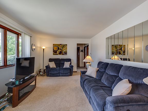 This inviting and spacious rancher is ready for its new owner! This home offers adorable curb appeal in addition to its wonderful location within walking distance to downtown & the park. Enter into a lovely foyer with ceramic tile flooring and convenient coat closet. Adjacent is a spacious living room with a gas fireplace, decorative lighted display shelf and a large front window, allowing in lots of natural light. The eat-in kitchen has been beautifully refreshed and updated with durable laminate flooring, tumbled marble backsplash and granite look counters. You will definitely appreciate the amount of cabinetry and counter space here while cooking and entertaining. Three bedrooms - all with good closet space, ceiling fans, and neutral carpeting & colors, share the main full bath. The full finished walk out basement provides you with another level of space which includes an open family room, separate office, and a 2nd full bathroom with corner stall shower. There is also an unfinished area perfect for a workshop, a laundry area, as well as a crawl space for even more storage options. The backyard is fully fenced with a patio area and 2 car detached garage, giving you just enough space for relaxing and play! To ease your maintenance worries, the heat, central air, hot water heater, roof, siding and windows are all newer! Don't miss seeing this one before it gets away!