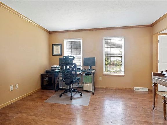 This handsome center hall Colonial is nestled in Brandywine Woods, a lovely sidewalk community. The location is convenient to parks, schools, shopping, restaurants, with easy access to highways for quick commute times. The exterior is surrounded by professional landscaping. Step inside the foyer with tile flooring that flows into the eat-in kitchen. To the left of the entry is a formal dining room with a modern chandelier and crown molding. The living room, currently used as an office/music room, features hardwood floors and glass doors to the family room. The family room has a striking brick fireplace and opens to the kitchen graced with granite counters, stainless-steel appliances, and a pantry. French doors lead to the covered back deck. On the second floor is a luxurious master suite with a vaulted ceiling, walk-in closet, and a spa-like bath with a jetted tub, double sinks, and a shower. All of the bedrooms have great closet space. The lower level offers endless possibilities.