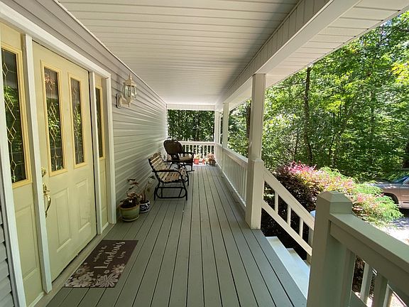 Large Rocking Chair Porch welcomes you into a Wonderful vaulted living room, high windows & Wood Burning Fireplace. Creek branch runs through the property-Efficient Kitchen,convection oven, dining area w/picture window, Master on Main, oversized master bath. #2 bedroom, large bathroom & charming loft located on second floor. Spacious lower level used as office. Full bath plumbing has been stubbed in. Lower level has Walk out to extra parking area. Lots of insulated windows to enjoy views. Great storage areas, Work room & Utility room in lower level. Circular drive. (Real Oak flooring in main level needs refinishing. Owner has health issues that do not permit exposure to chemicals to refinish,house is priced accordingly.) Full House HEPA filter, new HVAC 1.5 years old. Extra 1.4 ac lot next door is available for purchase for 25K & recently surveyed/marked. Community well.