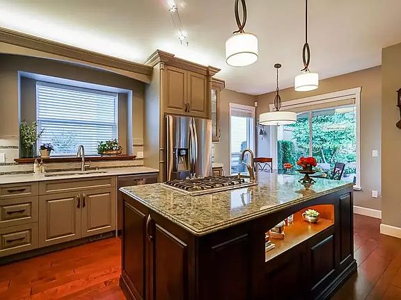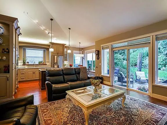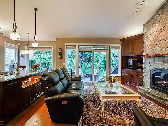 The property boasts 2,398 sq ft of casual elegance with vaulted ceilings and open-concept living. This home features a custom kitchen, family room with floor-to-ceiling Tofino stone fireplace, oversize bedrooms, and an extra entertainment loft and office with built-in work surfaces and storage. The generously sized primary bedroom overlooks the beautiful gardens and the spa-like ensuite features a state-of-the-art steam and spray shower complete with heated floors