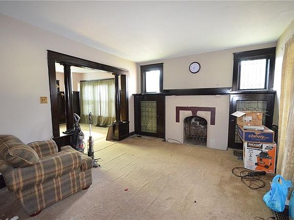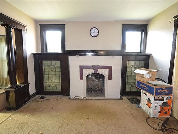 This home has original craftsman details, just needs to be restored. You will find original unpainted woodwork, leaded glass windows, built ins in the formal living & dining rooms. Kitchen & pantry room are awaiting an upgrade. Exposed wood steps with unique cut out looking into the living room with a stained glass light fixture lead to the upper 2 floors. Bedrooms 1 & 2 have hardwood floor, ceiling fans & thick wood trimmed entries, windows & baseboards. Full bath on 2nd floor. Hallway has a stained glass ceiling light. The 3rd bedroom is found on the 3rd floor of this all brick house.