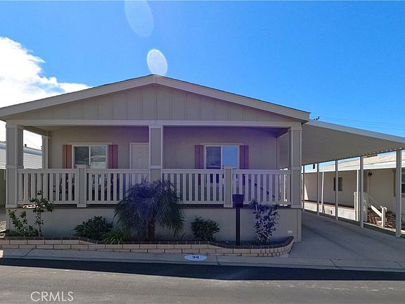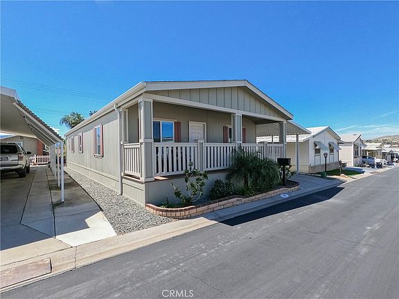 Welcome to Villa Magnolia, a sought-after Gated 55+ Community in the city of Riverside. This well-maintained 2018 Skyline manufactured home is turn-key and has 3 bedrooms and 2 bathrooms at 1674 sq. ft. (approx.). As you enter the home from the large front porch you are greeted with the large open floor plan, living room, kitchen, and dining area. The fully equipped kitchen has a large island with storage (drawers/cabinets), beautiful dark brown colored cabinets/drawers, and stainless-steel kitchen appliances. The large master suite with a large walk-in closet has an adjoining bathroom with double vanity sinks, a tiled walk-in shower, and floor-to-ceiling shelves for linens. The (2) nicely sized guest bedrooms share the guest bathroom. Additional features: flooring (entry, kitchen, and laundry room), carpet (living room, hallway, and bedrooms), recessed lighting, fans, and a laundry room with a full-size washer and dryer. Villa Magnolia has a beautiful clubhouse with a full-service kitchen, exercise room, and large sitting area with a fireplace, and is close to the 91 freeway, Kaiser Permanente, and Tyler Mall.