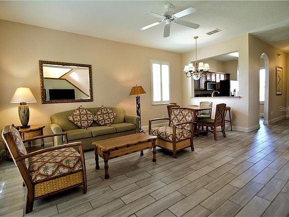 OVER $10K PRICE REDUCTION! Looking for a successful income producing vacation rental? Look No Further! This beautiful end unit comes FULLY FURNISHED! Spacious living room, dining room and kitchen flooring with updated tile flooring. The upstairs Master Bedroom has a beautiful balcony to relax on. This beautiful resort is minutes from Disney World and other major attractions. Regal Palms is a gated community and features an expansive clubhouse with Frankie Farrells Bar and Grill, a fitness center, an arcade, a spacious resort pool with water slide, lazy river, zero-entry pool, sand volleyball court, a pool side tiki bar, and a sundry shop. Future Booking will convey if kept with same management company.