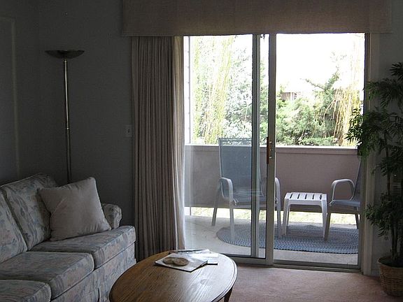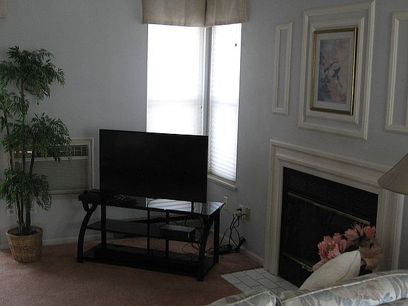 Two bedroom, two bath condo completely furnished. One car garage A/C and fireplace. Central location